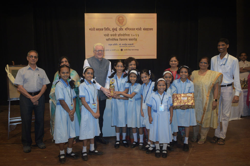 prize distribution ceremony on 10th March 2023 of Gandhi Jayanti Compeitions 2022, for the primary students of Taluka Panvel, Dist Raigad at Shantivan, Panvel.
